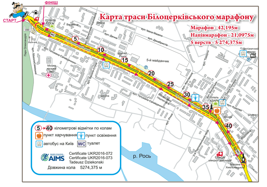 КЛБ “Білоцерківський марафон”, 09113, Україна, Київська область, м. Біла Церква, вул. Січневого прориву, 43-В, моб. + 380674064806, факс + 380456347542, е-mail: sergeebocharov@gmail.com