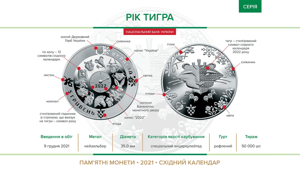З 9 грудня Національний банк України вводить в обіг новорічну монету «Рік Тигра», присвячену одній із тварин 12-річного східного календаря.