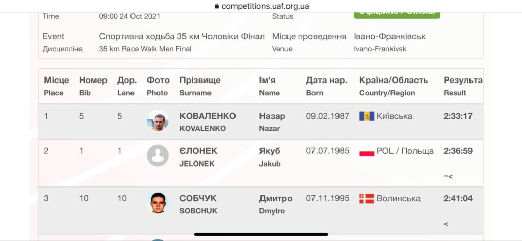 Біла Церква – БЕЗ ТАБУ > Останні публікації > Новини > Білоцерківець Назар Коваленко виборов золото на Чемпіонаті України зі спортивної ходьби на 35 км