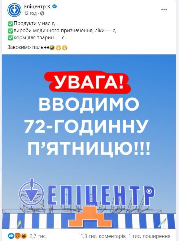 “Епіцентр” передумав працювати на вихідних і йде в режим онлайн.
