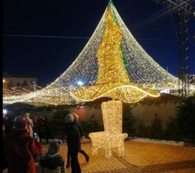«Довжелезна черга стоїть до найкращого символічного місця, де можна загадати бажання під чарівним капелюхом. Символічне фото під найочікуванішим арт-об‘єктом сезону можна зробити біля головної ялинки країни!» – написала вона.