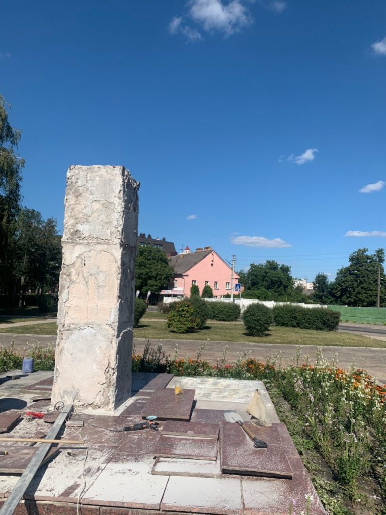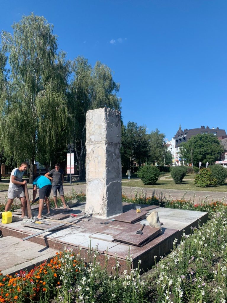Договір на ремонтні роботи було укладне ще в березні місяці. Весною одна плита відпала, інші також відпадали, пам’ятник перебував у аварійному стані.