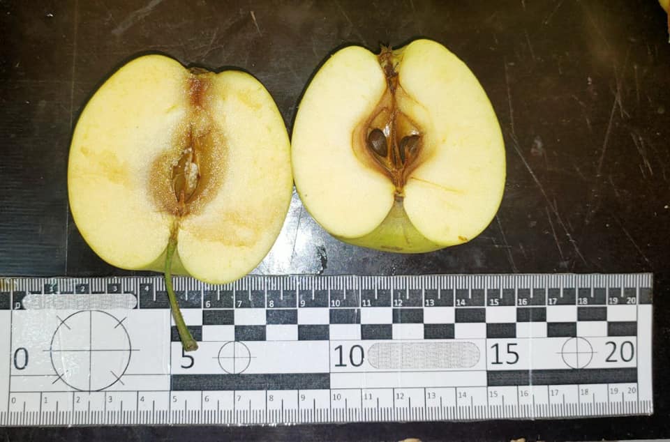 А 09 лютого 2022 року, в ході реалізації оперативної інформації, під час догляду посилки, що надійшла на ім’я засудженого К., від громадянки С., було виявлено 10 яблук з ознаками оброблення невідомими речовинами.