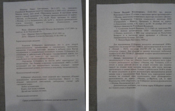 До листа в офіційні структури Брюсселя для об’єктивного розслідування злочинів режиму екс-спецназівець Ігор Макар також доклав деякі документи оперативної розробки, яку проводило КДБ для виявлення всіх пересувань Шеремета. У них є інформація про автомобіль і місце проживання журналіста в Москві, його контакти і номери телефонів.