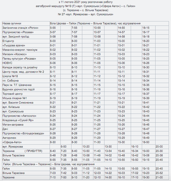 Виконавчий комітет Білоцерківської міської ради повідомляє, що з 10 лютого цього року розпочинають роботу автобусний маршрут загального користування: