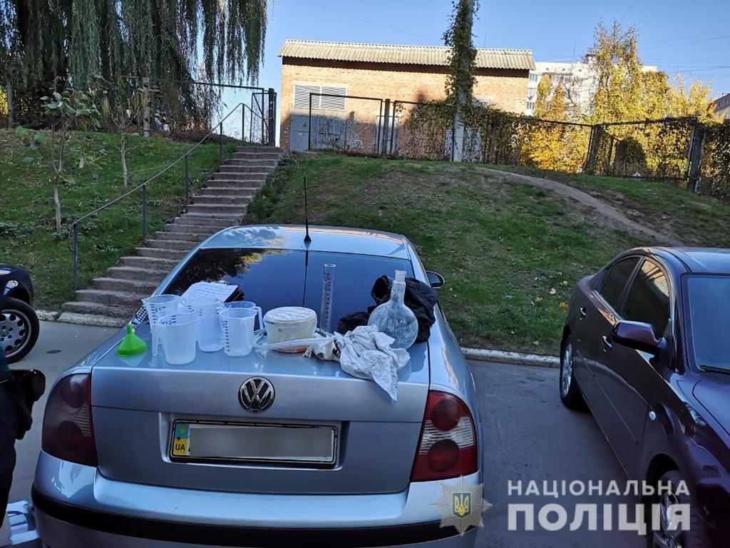 В присутності понятих у правопорушника виявили амфетамін та безліч ємностей і прекурсорів для його виготовлення.
