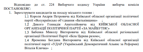 Відтак, зареєстрованими кандидатами на посаду міського голови є: