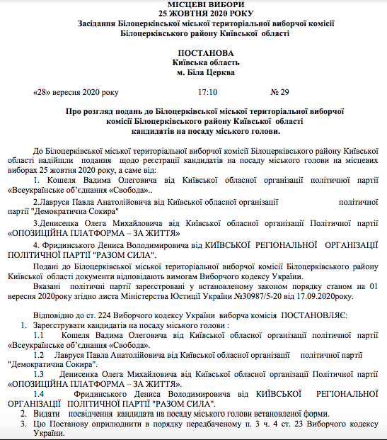 Перелічені кандидати отримали посвідчення кандидата на посаду міського голови встановленої форми.