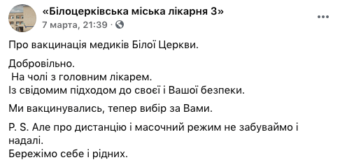 Медики Білоцерківської міської лікарні №3 отримали щеплення проти коронавірусу.