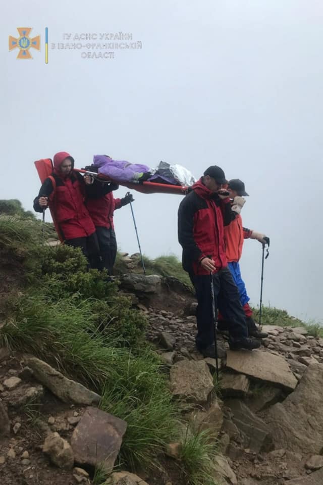 О 20:00 рятувальники транспортували травмовану жінку до підніжжя гори, передали іншим представникам групи, які автобусом доставили потерпілу до Яремчанської ЦРЛ.