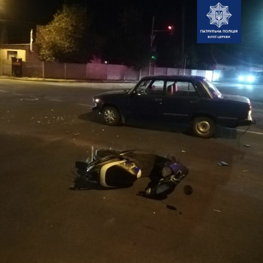 У Білій Церкві зіткнулися автомобіль ВАЗ і моторолер Yamaha, постраждали двоє неповнолітніх хлопців.