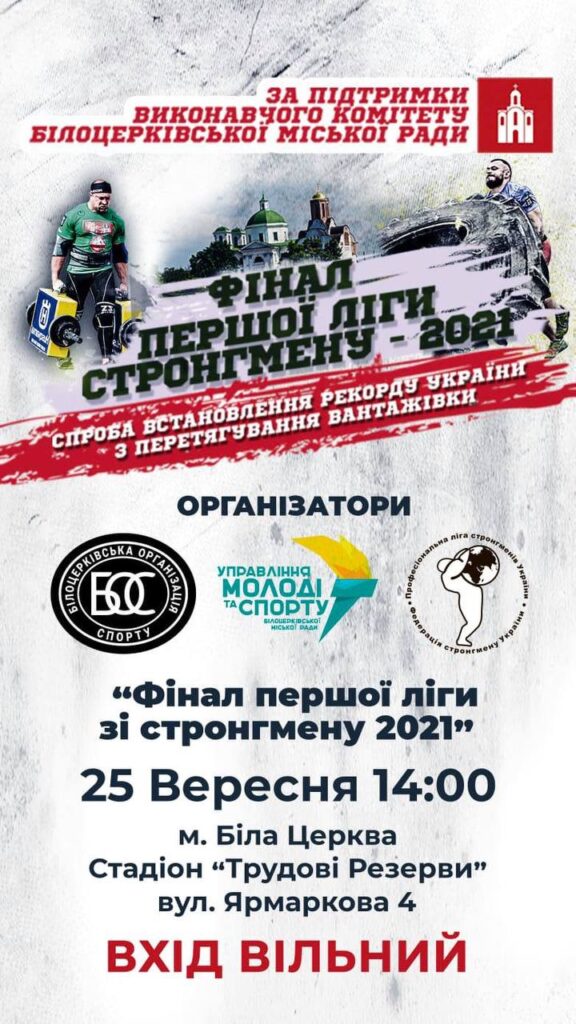 25 вересня на Стадіоні “Трудові резерви” відбудеться Фінал першої ліги зі стронгмену 2021. Початок о 14:00.