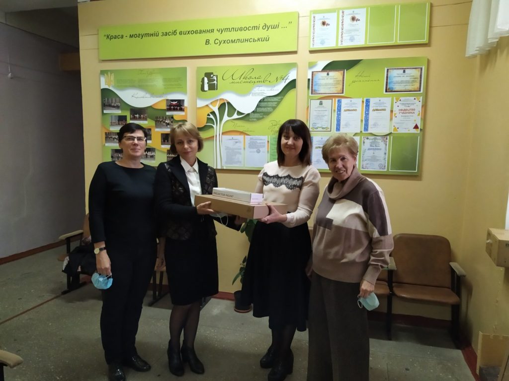 Обладнання разом з міським головою передавали його заступник Катерина Возненко та начальник відділу культури і туризму міської ради Юлія Ковальська, які також привітали педагогів з Днем вчителя та Днем музики.