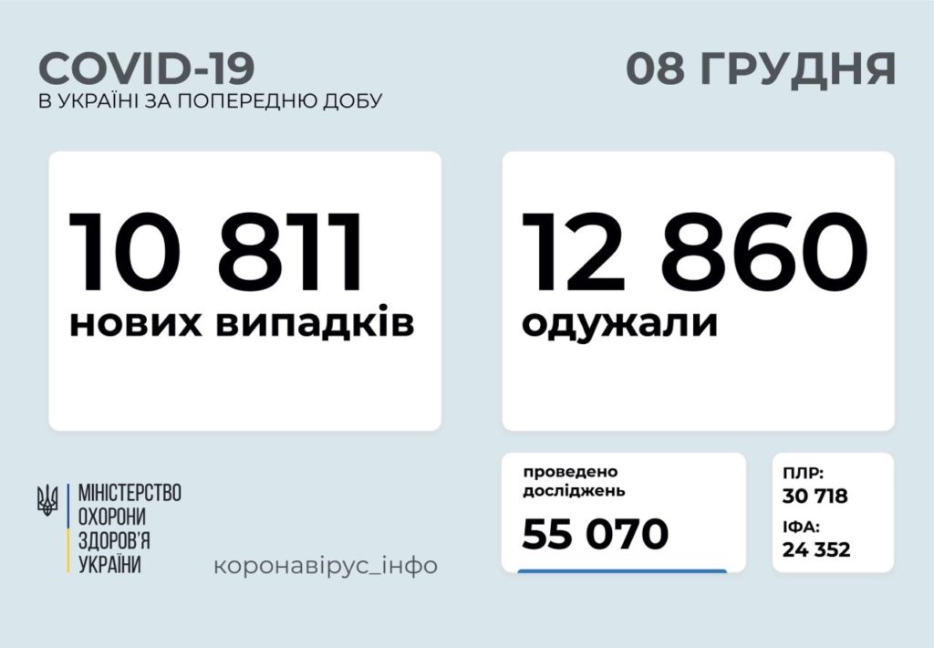 За минулу добу коронавірус в Україні виявили у 10 811 осіб, зафіксовано 195 летальних випадків, 12 860 пацієнтів одужали.