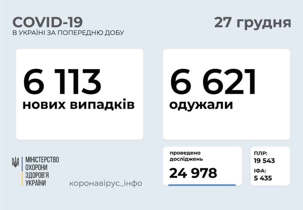 Про це свідчать дані Міністерства охорони здоров’я станом на ранок неділі, 27 грудня.