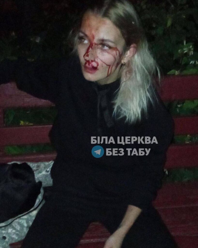 28-річна білоцерківчанка зробила зауваження молоді, аби ті не розпивали алкогольні напої на дитячому майданчику, а натомість їй зламали носа, вибили зуби та надавали стусанів.