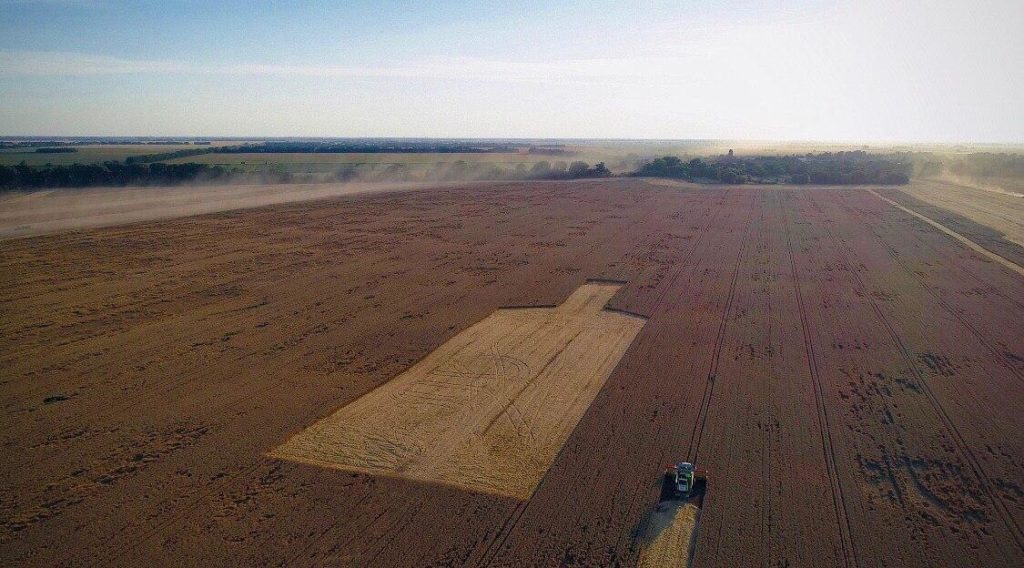 Силует видно з космосу – довжина пляшки становить 202 метра, ширина 57 метрів. Зробивши такі фігуру, комбайнери поставили новий рекорд.
