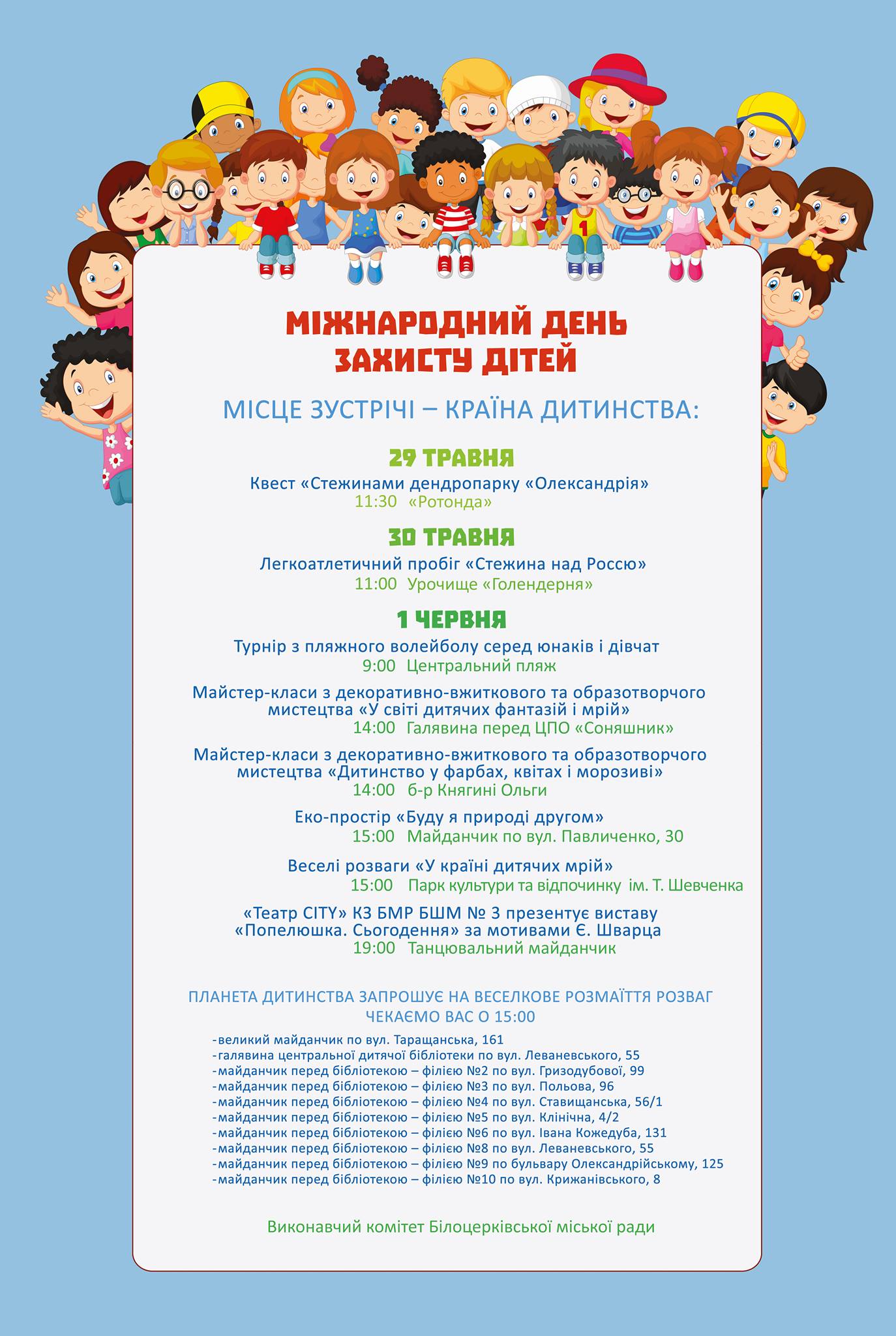 Програма заходів в Білій Церкві до Міжнародного Дня захисту дітей