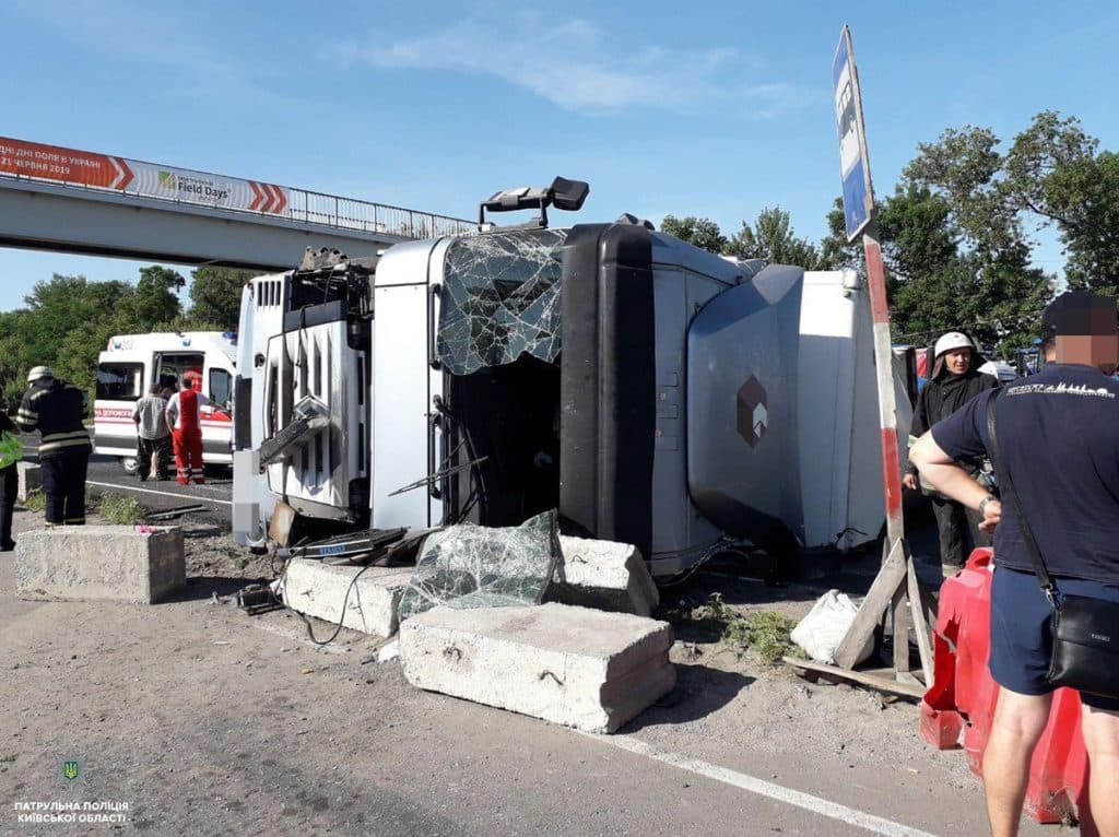 В середу, 26 червня, на 65-му кілометрі автотраси Київ – Одеса сталася ДТП за участю вантажівки Renault Magnum 480 і позашляховика BMW X3. В результаті аварії вантажівка перекинулася і заблокувала рух відразу двох смуг.