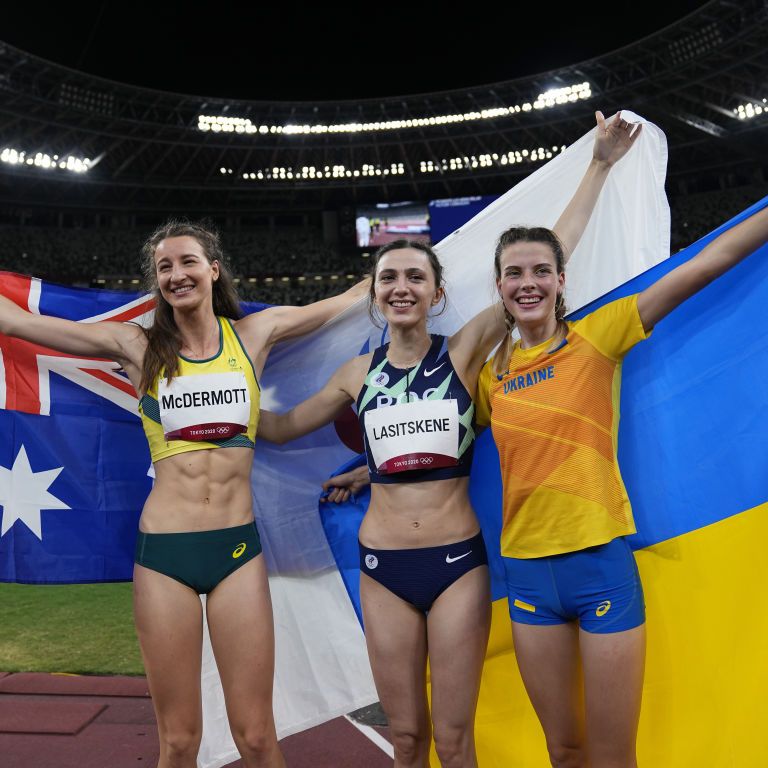 • Згодом в мережі з’явилися фото, на яких українка позує з російською атлеткою Марією Ласіцкене відразу після змагань. Магучіх тримала в руках прапор України, а росіянка – прапор олімпійського комітету Росії.