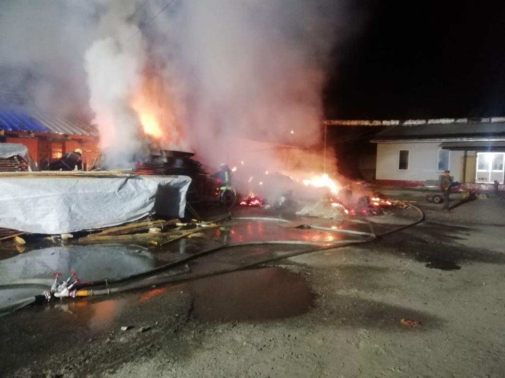 По прибуттю рятувальниками встановлено, що горить крівля столярного цеху та існує загораза росповсюдження вогню, загальна площа будівлі 660 кв. м.