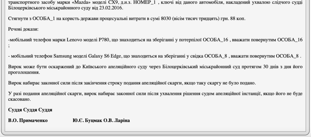 Про це йдеться у вироку Білоцерківського міськрайонного суд від 8 листопада.