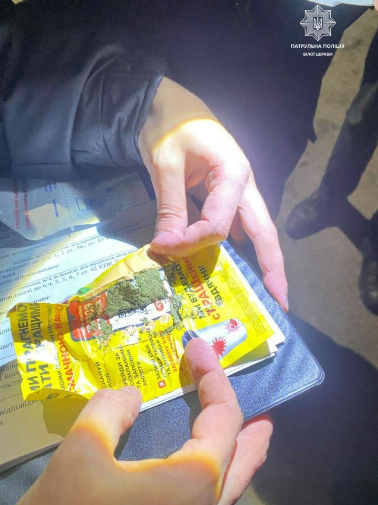 На вулиці Лазаретна, у неділю, близько 18-ї години, знову ж таки, поліцейські взводу ТОР під час поверхневої перевірки виявили у громадянина паперовий згорток з зеленою речовиною.