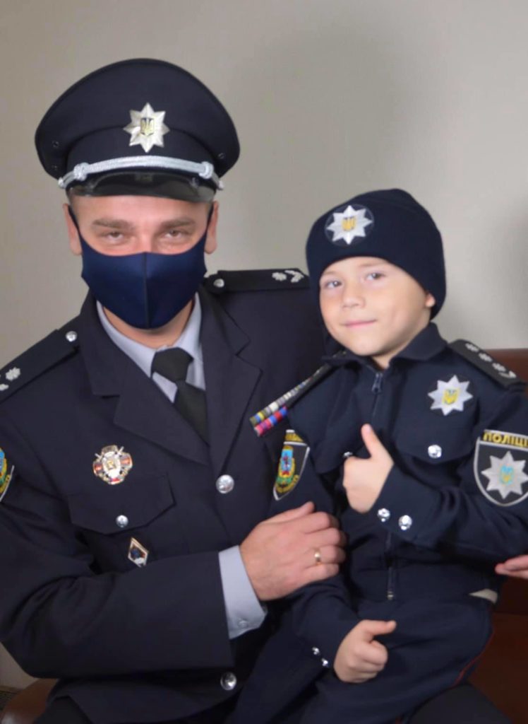 Начальник Білоцерківського відділення поліції № 1 Андрій Галюк запросив малюка «на службу», де на нього вже чекала його справжня поліцейська форма.