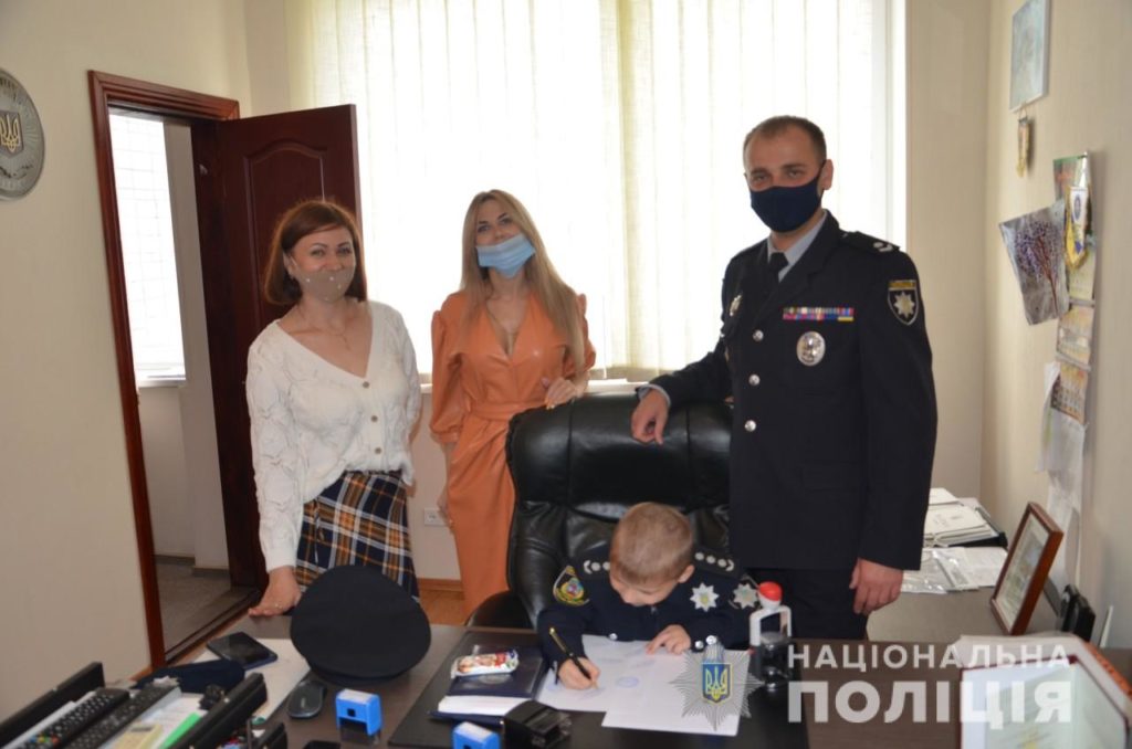 Робочий день Єгорчика розпочався з плідної роботи – потрібно розглянути безліч «документів» та особисто проставити підписи і печатки. Хлопчик так захопився поставленими завданнями, що й не помітив, як пролетів час. Після «поліцейської роботи» на нього вже чекала екскурсія по відділу поліції та службовий автомобіль. Він із неприхованим захопленням оглядав поліцейську автівку та навіть подавав команди у гучномовець.