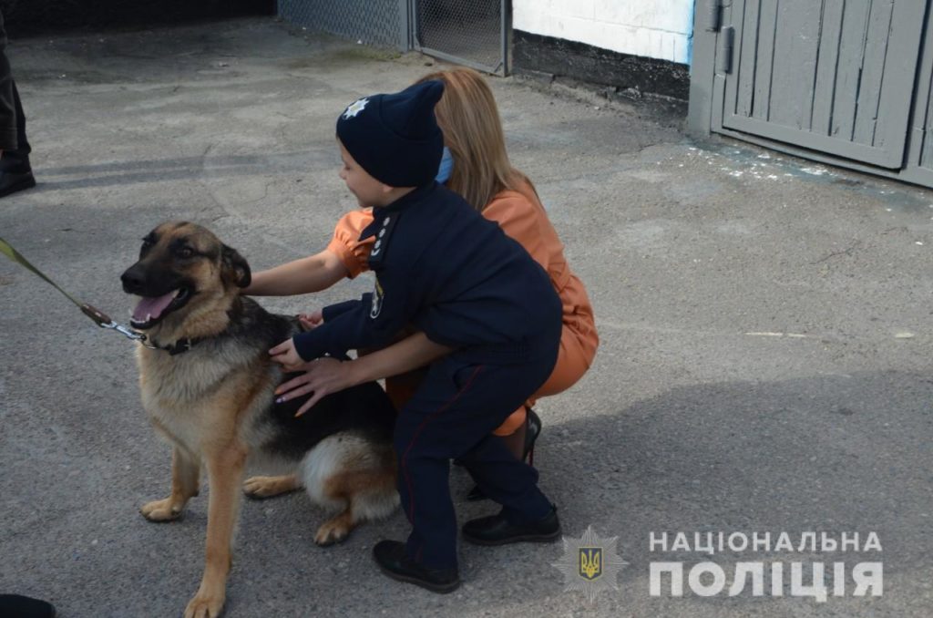 Також «новенький» поліцейський познайомився із роботою кінологів, які провели для маленького колеги майстер-клас із службовими собаками.