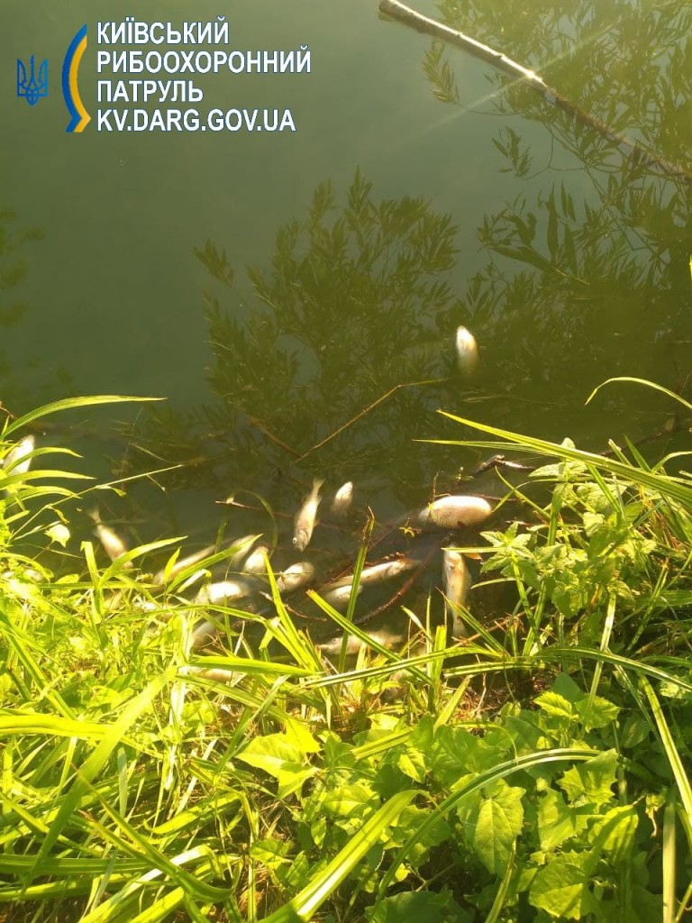 В результаті місцями виявлено загибель таких водних біоресурсів: йорж звичайний – 53 екз., середньою вагою 15-20 г, окунь – 30 екз., вагою 30-40 г та судак – 15 екз., вагою 500 – 1 000 г. Встановлено, що у риби наявні ознаки гниття, а вода зеленого кольору з неприємним запахом.