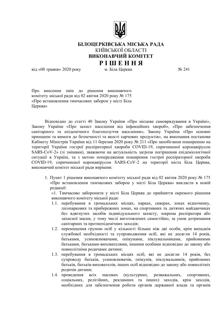 Відповідне рішення було прийнято на позачерговому засіданні Білоцерківського виконавчого комітету 8 травня.