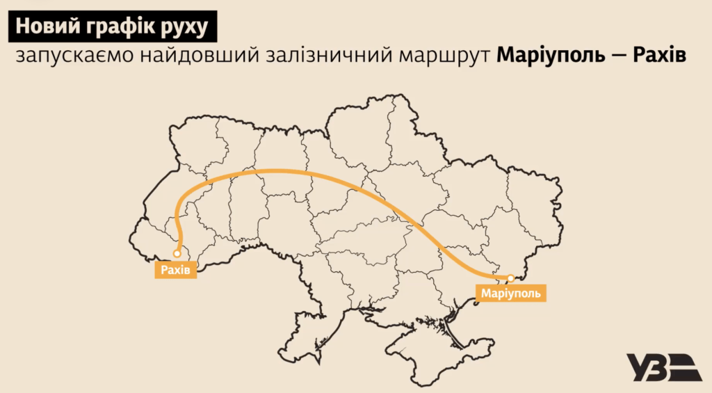 Як повідомили в “Укрзалізниці”, поїзд №5/6 Маріуполь — Рахів з’явиться новому графіку руху поїздів, який запустять 12 грудня 2021 року.