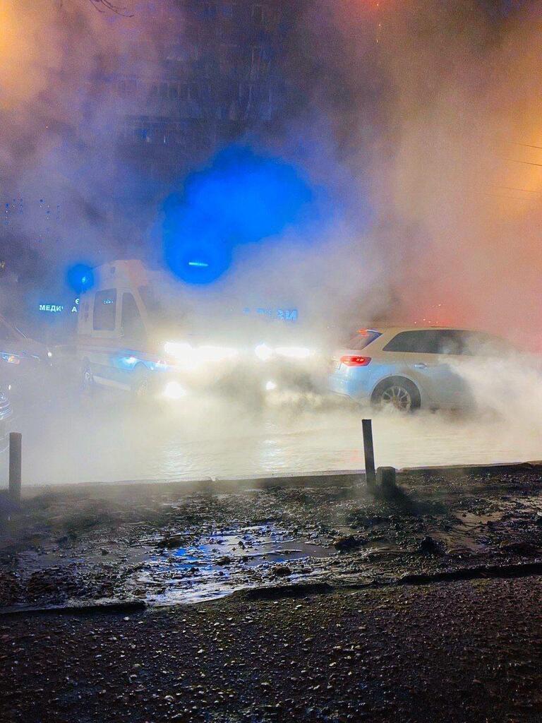 Через гарячу води утворюється густий пар, тому водіям нічого не видно на дорозі. На місце події вже прибули швидкі і рятувальники. Також вже підключилися комунальники.