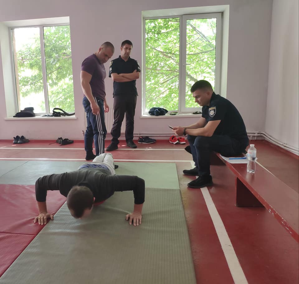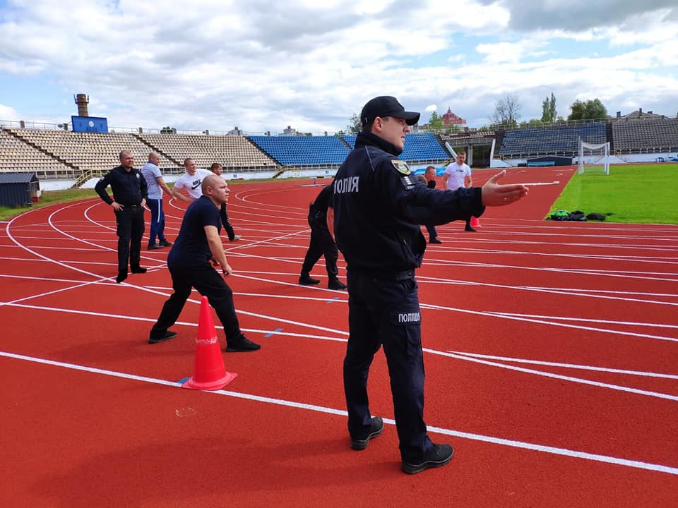 Згодом працівники поліції продемонстрували навички з тактики самозахисту та виконали комплексну силову вправу. Завершили перевіряти поліцейських на стадіоні “Трудові резерви”, де вони долали дистанцію 100 та 1000 метрів згідно вимог визначених нормативів.