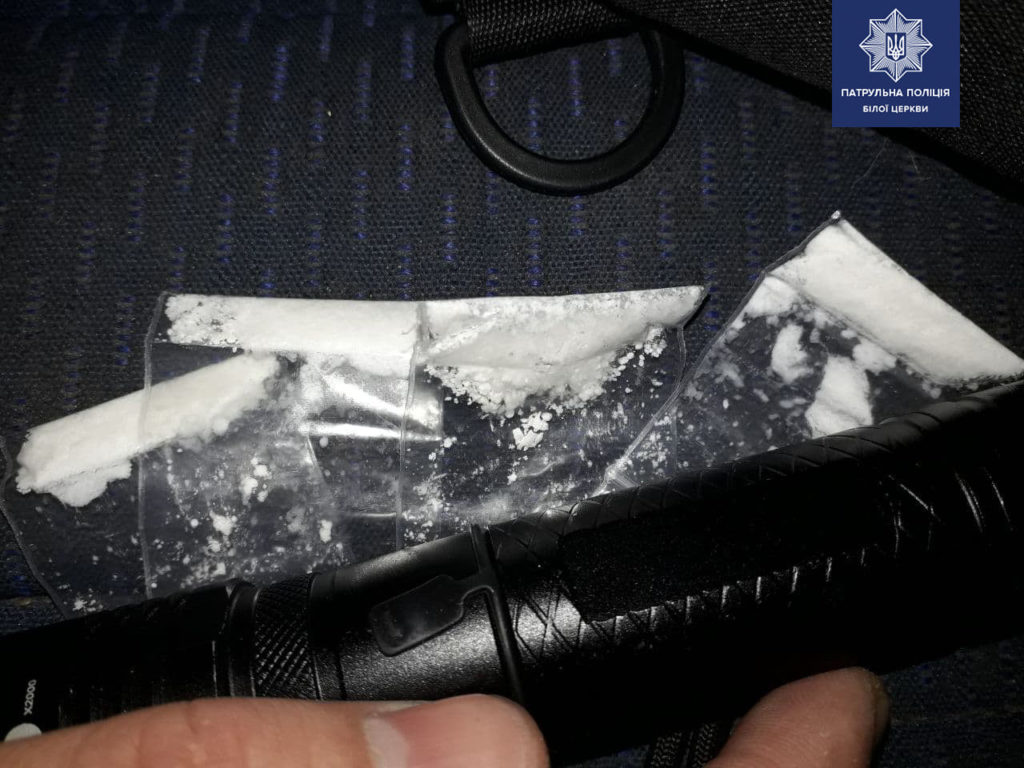 Білоцерківські патрульні 16 листопада виявили у водія з ознаками сп’яніння 13 пакетиків з, ймовірно, наркотичними речовинами.