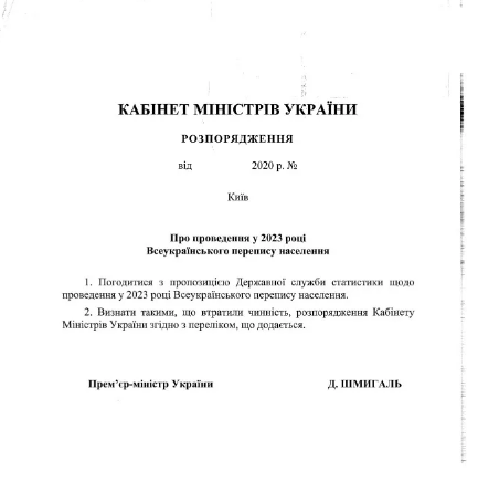 Раніше перерахувати все населення України хотіли у 2020 році. На це планували витратити 3,43 мільярда гривень. Проте з початком пандемії COVID-19 стало зрозуміло, що захід доведеться перенести на більш пізній термін.