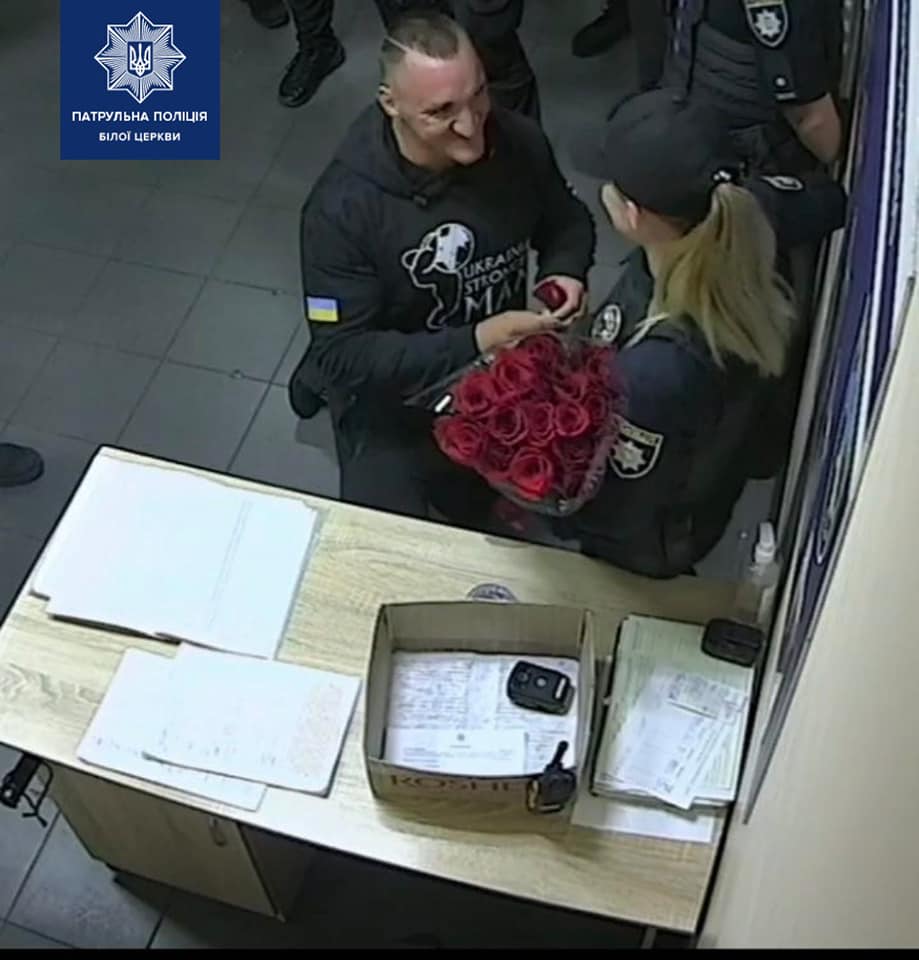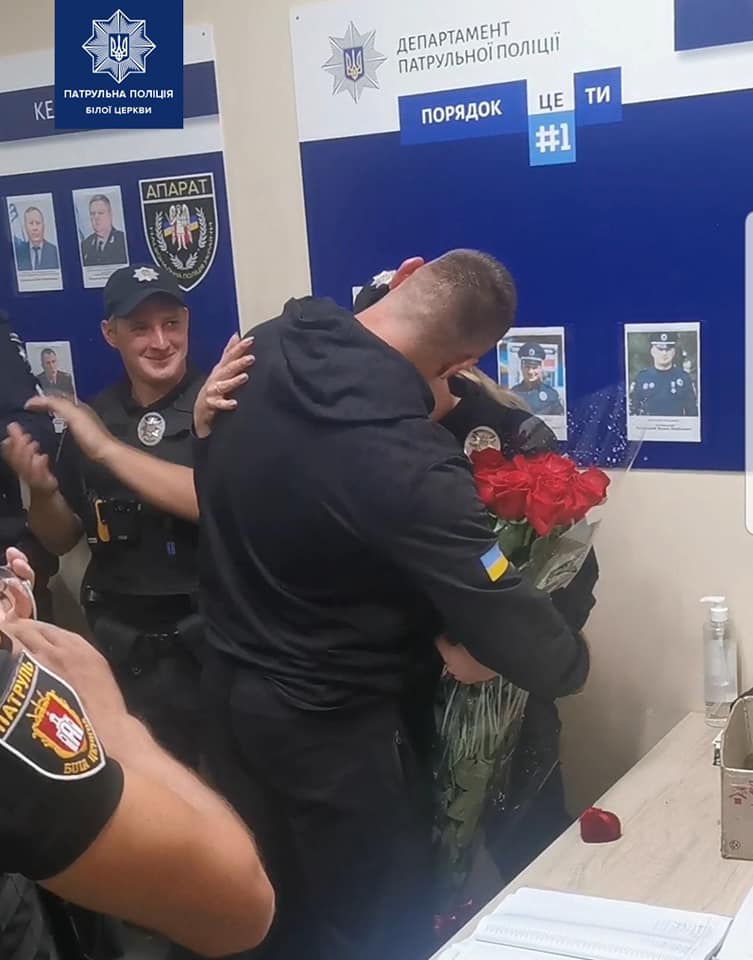 Вечірнє шикування перед нічною зміною в батальйоні патрульної поліції м. Біла Церква було зовсім незвичайним: гарні квіти, каблучка, пропозиція руки та серця.