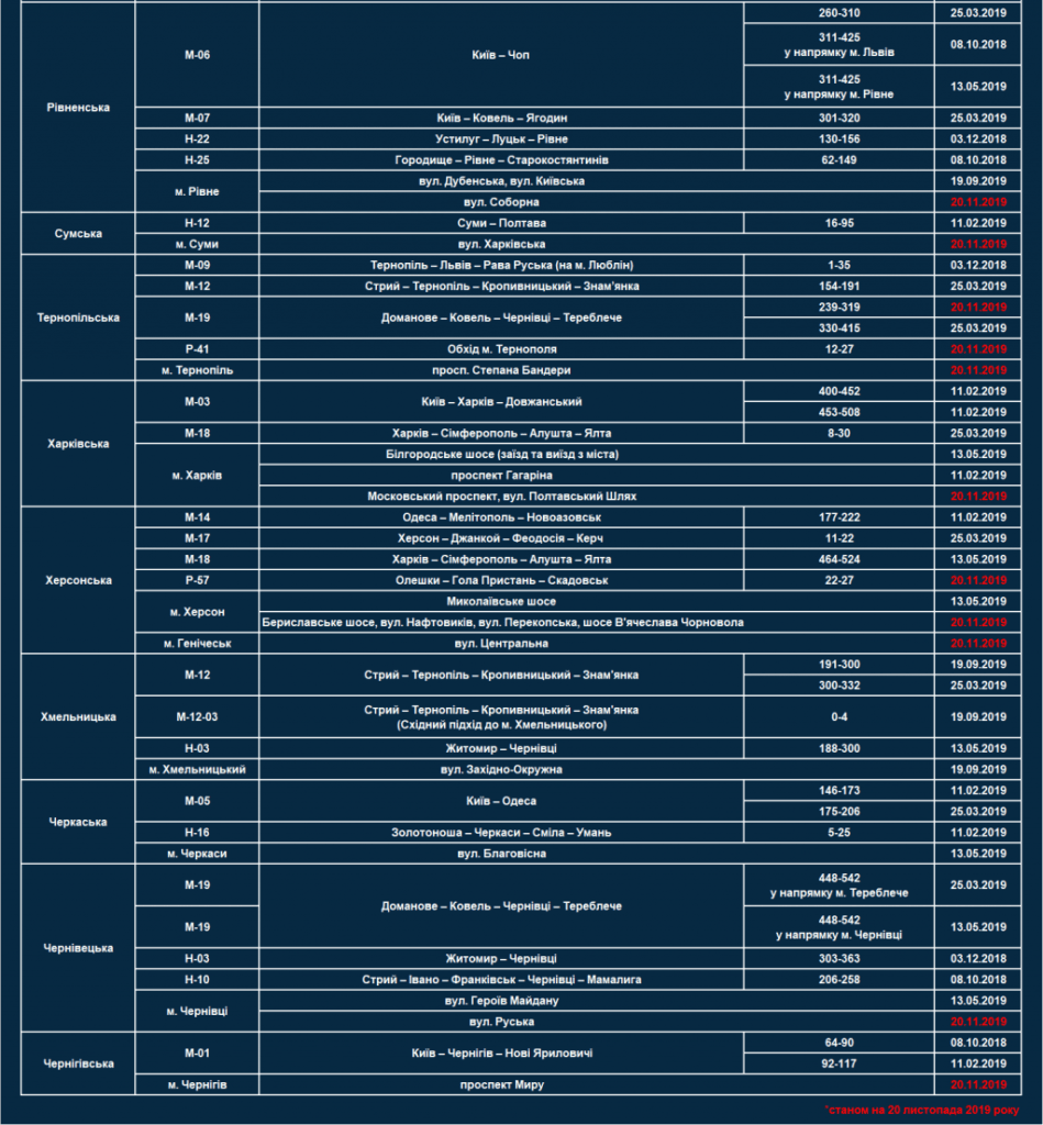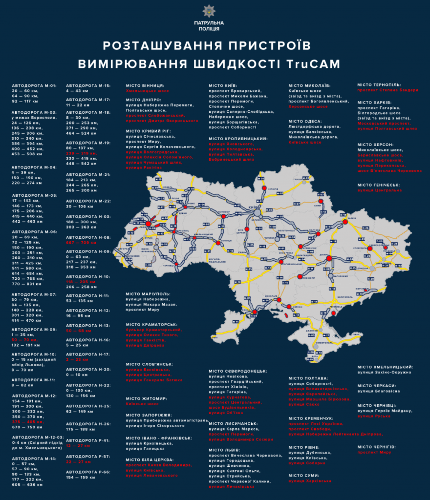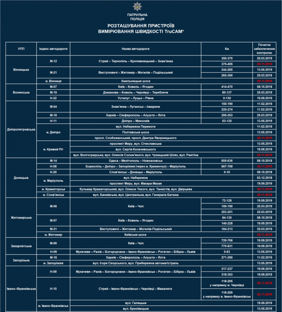 20 листопада, додаємо ще 57 нових ділянок, а також розширюємо уже 2 існуючі. Усього на дорогах України працюватиме 115 приладів TruCAM, а вимірювання здійснюватиметься на 186 ділянках.