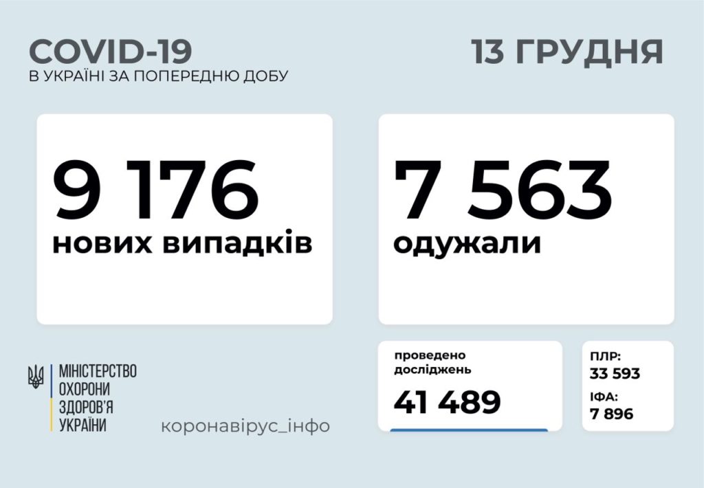 За минулу добу коронавірус в Україні виявили у 9176 осіб, зафіксовано 156 летальних випадків, 7563 пацієнти одужали.